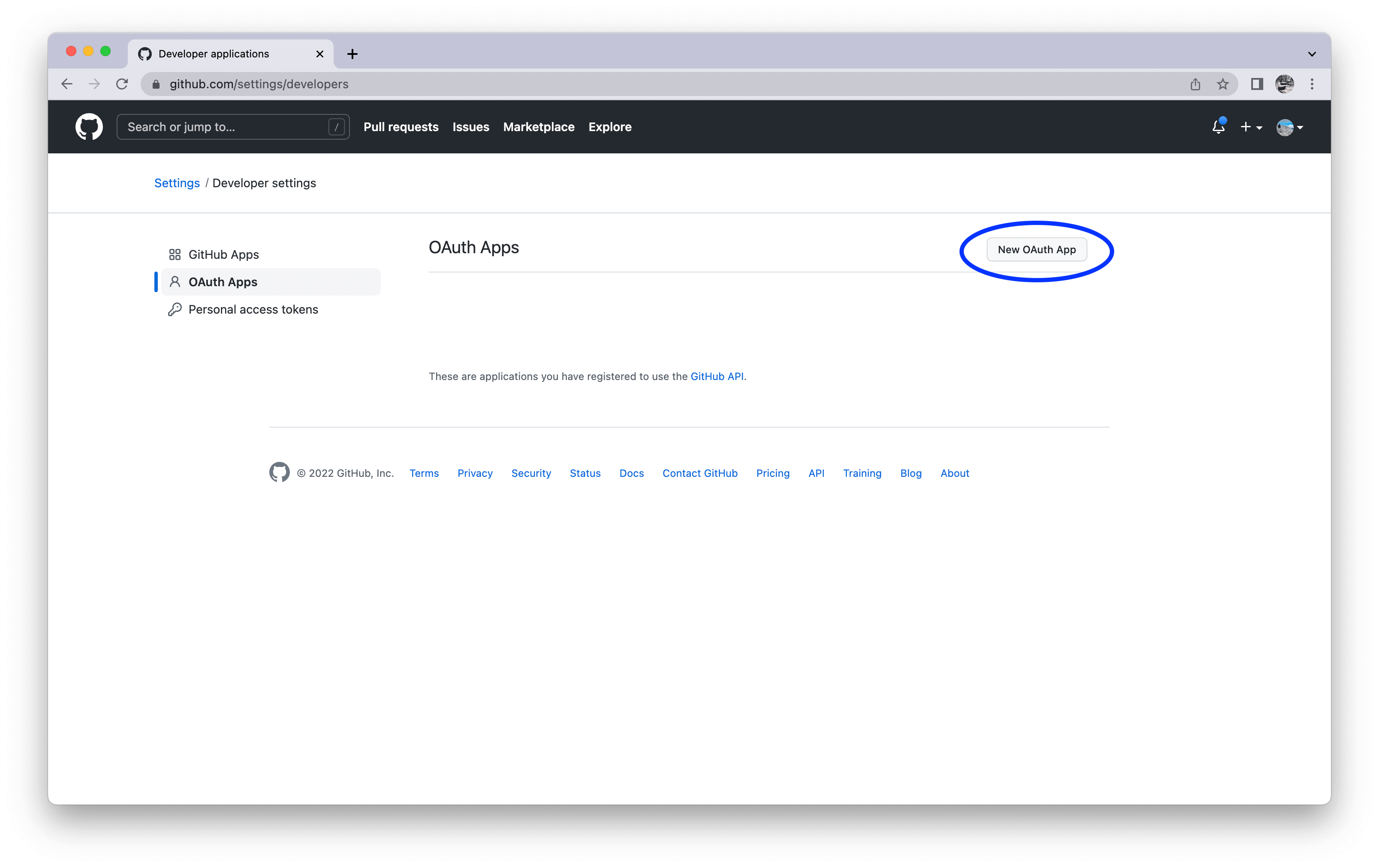 Log in to GitHub, go to Settings / Developers / OAuth Apps and click "New OAuth App"
